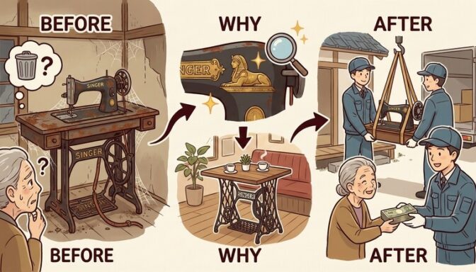 多くの人が「古くて汚い=価値のないゴミ」と思い込み、数千円から、場合によっては1万円近い処分費用を支払ってミシンを手放してしまいます。しかし、実はそのミシンが、逆に数千円、モデルによっては数万円の現金に変わる可能性が非常に高いのです。