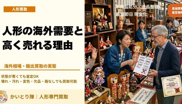 なぜ日本の人形が海外でこれほど高く評価されるのか。海外需要の実態・海外相場の形成メカニズム・輸出・海外向け売却を実現するための具体的な方法まで、高単価売却の裏付けとなる知識を本記事で徹底解説します。