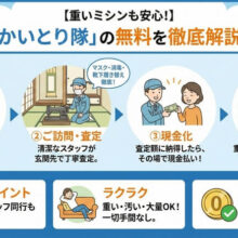 査定額にご納得いただければ、その場で現金をお支払いします。後日の振込を待つ必要はありません(高額商品の場合は安全のため振込対応となる場合もあります)。「急な出費でお金が必要になった」「引越し日が迫っていて、すぐに部屋を片付けたい」といったご要望にも、迅速に対応することが可能です。