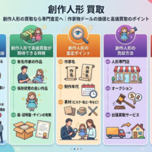 本記事では、創作人形がコレクターから熱狂的に支持される理由をはじめ、高価買取が期待できる作品の特徴、具体的な査定ポイント、そして少しでも高く売るための実践的なコツを詳しく解説します。あなたが大切にしてきた創作人形を、最も価値を理解してくれる次の持ち主へとつなぐための参考にしてください。